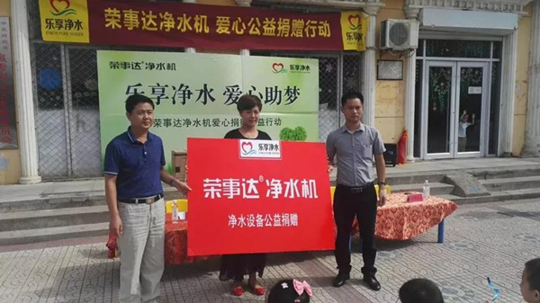 自2011年起,榮事達發起“樂享凈水·健康助學行動”,通過向貧困地區學校免費提供直飲水設備、援建校園直飲水工程、開展健康知識講座等志愿服務,讓青少年兒童喝上健康衛生的飲用水,同時樹立科學的飲水理念,幫助孩子茁壯成長。助學活動開展以來,榮事達志愿服務團隊已遍及安徽、江蘇、陜西、江西、河南、河北等多個地區,捐贈、安裝凈水設備數千套,受益師生群體龐大,社會反響空前。未來,企業將繼續全面、持久地踐行助學公益,為校園師生締造安全飲水環境。