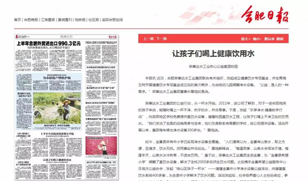 安徽經濟新聞網 《逐夢公益 · 為愛前行|榮事達讓更多的人喝上健康水》