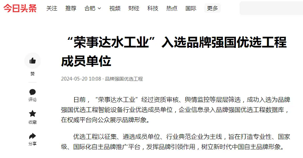 - 媒體聚焦 | “榮事達(dá)水工業(yè)”入選品牌強(qiáng)國優(yōu)選工程成員單位