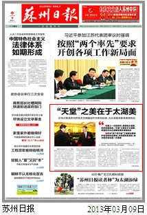 習近平對蘇州的秀美記憶猶新,“江南是個好地方,自古就有‘上有天堂,下有蘇杭’之美譽。之所以稱蘇杭為‘天堂’,不僅因為那里經濟繁榮、社會安定,‘日出江花紅勝火,春來江水綠如藍,能不憶江南’,江南美景美不勝收啊。”“美麗中國”需要和諧共建。蘇州的“四個百萬畝”工程給總書記留下了深刻印象。在最后的發言中,習近平又一次“點評”起蘇州:“蘇州‘四個百萬畝’工程提出要保護老百姓的莊稼地,水稻田就是濕地,種水稻本身也是一方美景,《紅樓夢》里大觀園中也有稻香村嘛?!绷暯焦膭钫f,和諧、全面是對科學發展內涵理解得更深刻的反映,希望蘇州在率先、排頭、先行的內涵中,把生態作為一個標準,為江蘇乃至全國發展作出新貢獻。
