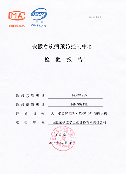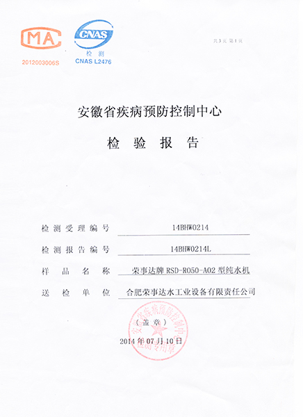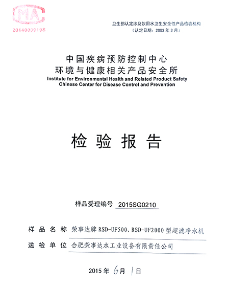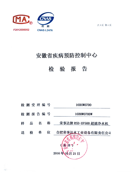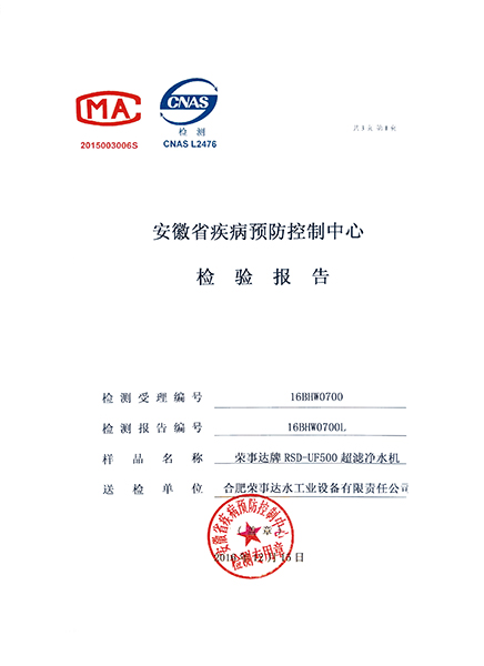 RSD-UF500超濾凈水機檢驗報告...