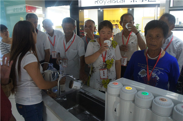 參觀中,安徽望江地區的李先生詢問有沒有能過濾井水的產品,“我們家里沒通自來水,這些天連續大雨,家里井水犯渾,根本沒辦法喝。”工作人員向其推薦了專門為農村地區研發的自吸式純水機,產品能有效克服水壓不足、不穩問題,采用先進的反滲透技術和五級過濾系統,能夠高效濾除水中雜質,去除水垢、水堿、農藥、化肥、細菌、重金屬等有害物質。在展廳,消費者切身感受了產品使用效果,在飲用機器現制的水之后,紛紛稱贊產品功能強。