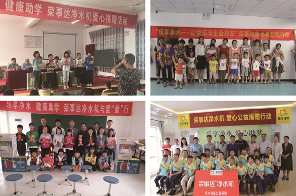 “樂享凈水.健康助學行動”由榮事達水工業公司2011年發起,向貧困地區學校免費提供直飲水設備,援建校園直飲水工程,開展健康知識講座等志愿服務,讓青少年兒童喝上健康衛生的飲用水,同時樹立科學的飲水理念,幫助孩子茁壯成長。