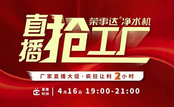 瞄準網(wǎng)絡化營銷聚變新格局,榮事達水工業(yè)集團以創(chuàng)新思維持續(xù)引領凈水銷售模式升級,借力現(xiàn)場感與代入感超強的新媒體直播平臺,貫通線上線下渠道,助力經(jīng)銷商快速銷售。4月16日,榮事達2020年硬核大動作——“榮事達凈水機?直播搶工廠”網(wǎng)絡直播營銷活動強勢落地,贏戰(zhàn)市場!