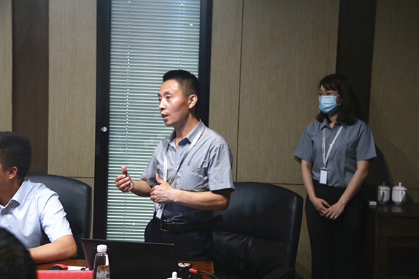 隨后,污水處理總經理王帆也從洗消廢水、養殖及生活污水、企業生態鏈三個方面對畜禽養殖污水處理工程進行了綜合匯報。王總針對養殖過程中產生的各類污染物難題,全面介紹了榮事達“無虞”系列污水處理設備。物化、生化、固體綜合利用等一體化處理工藝運用,有效實現畜禽養殖污水的排放回用。同時,王總進一步提出“畜禽污物生化制肥與周邊種植飼料回補”的循環互利解決方案,再次贏得調研組的全面好評。