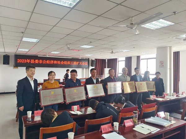 會議傳達學習了省委、市委非公工委擴大會精神,為11家省、市、縣級“雙強六好”、“雙比雙爭”及黨建工作示范點獲獎單位授牌。縣委常委、組織部部長張偉親自向合肥榮事達水工業設備有限責任公司黨支部代表頒發了“2022-2024年度全縣非公企業和社會組織黨建工作示范點”獎牌。這次合肥榮事達水工業設備有限責任公司黨支部是繼2016-2022年連續5星黨支部后,再次評定為縣級非公黨建工作示范點。體現了中共長豐縣委組織部對榮事達水工業黨支部工作的充分肯定和高度評價。