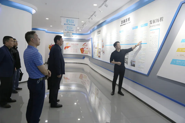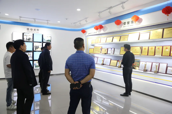 領(lǐng)導(dǎo)一行深入榮事達(dá)智慧水世界展廳,聽取了講解員對(duì)榮事達(dá)水工業(yè)發(fā)展歷程、榮譽(yù)成就、公益行動(dòng)及黨建引領(lǐng)的全面介紹。