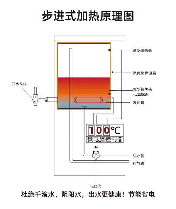 此次用于陜西省寶雞市鳳縣雙石鋪中學的RSD-60K步進式開水器采用步進式加熱技術,多級過濾系統(tǒng)和七重保護功能等,杜絕千滾水、陰陽水,連續(xù)供應開水,節(jié)能省電,出水更健康,使用安全放心。