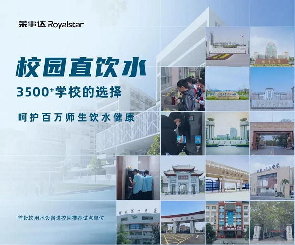榮事達水工業公司作為飲用水設備進校園推薦試點單位,并被教育部《校園飲水設備運維指南》編委會任命為副主任單位,憑借新設計、新模式、新服務等優勢,在業界樹立了良好的口碑。公司先后承建了包括中國科學技術大學、河南大學、武漢商學院在內的3500多所學校的直飲水工程,為千萬師生提供了優質的飲水服務。