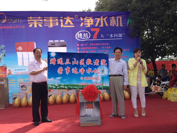 榮事達(dá)水工業(yè)公司一直踐行公益,關(guān)注社會弱勢群體飲水安全,蕪湖營銷管理中心自成立以來,開展了各種形式的公益活動。7月上旬,榮事達(dá)凈水機(jī)攜手蕪湖市老年協(xié)會到三山敬老院進(jìn)行慰問演出,為老人們奉上了精彩的歌舞表演,給他們帶去了歡樂,并向該院捐贈了凈水機(jī),讓老人們能喝上放心水。