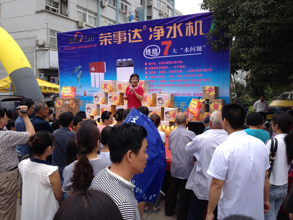 為打開市場、推廣產(chǎn)品,蕪湖管理中心舉辦了多次市場活動。7月5日,榮事達(dá)凈水機(jī)“送健康 進(jìn)萬家”感恩回饋活動在蕪湖市三山區(qū)順利舉行,現(xiàn)場人氣爆棚。消費者購機(jī)不但能享受價格優(yōu)惠,還能砸金蛋抽大獎。活動當(dāng)天,現(xiàn)場成交凈水機(jī)達(dá)34臺,電動車、洗衣機(jī)等大獎均被抽出。