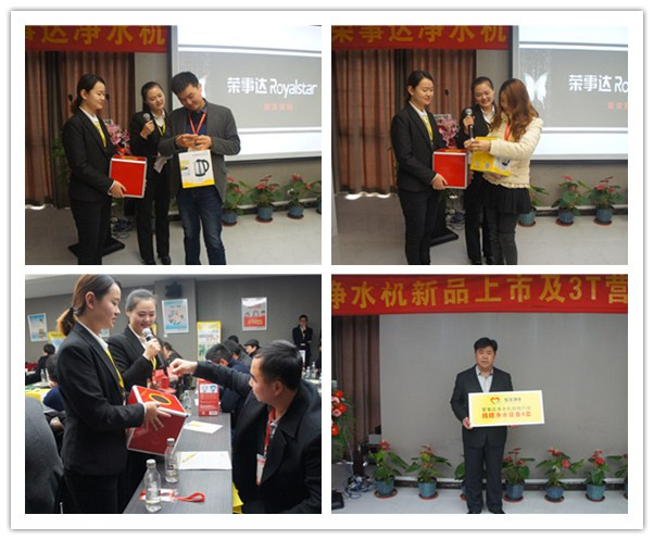 為應(yīng)對2016凈水市場快速發(fā)展的要求,榮事達(dá)精心推出R8櫥下智能純水機(jī)、箱體LED純水機(jī)、速熱飲水機(jī)等多款新品,適應(yīng)細(xì)分市場需求,助力終端網(wǎng)點(diǎn)提高市場占有率。在隨后的新品培訓(xùn)環(huán)節(jié),榮事達(dá)渠道開發(fā)部王部長和董部長對新品功能特點(diǎn)、市場定位進(jìn)行了詳細(xì)講解。新款純水機(jī)配備RO反滲透技術(shù)及五級過濾系統(tǒng),融智能顯示、自動化沖洗、防漏水設(shè)計(jì)于一體,并為用戶提供了櫥上、櫥下安置的不同選擇;新款飲水機(jī)采用厚膜加熱管原理,三秒即熱,并可實(shí)現(xiàn)多檔水溫水量調(diào)節(jié),使得家庭飲水更方便。新品踐行了榮事達(dá)產(chǎn)品定制的研發(fā)理念,類型多樣,既包含了可攻克農(nóng)村地區(qū)水壓不足不穩(wěn)狀況的自吸增壓凈水機(jī),也囊括了滿足城市居民追求健康時尚消費(fèi)需求的高端機(jī)型,參會客戶通過了解,紛紛表示定制新品市場定位準(zhǔn)確,前景極為廣闊。