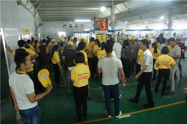 14日下午,渠道開發(fā)部張總給與會學員作了企業(yè)文化講座,介紹了品牌發(fā)展歷史及公司研發(fā)、生產(chǎn)、銷售、服務(wù)等方面的發(fā)展現(xiàn)狀,并展示了公司取得的榮譽資質(zhì)以及積極踐行的公益活動。之后,在渠道開發(fā)部王部長等一行工作人員的帶領(lǐng)下,廣大學員對生產(chǎn)園區(qū)進行實地考察,見證公司規(guī)模實力。學員們在廠房體驗了先進生產(chǎn)環(huán)境,通過參觀生產(chǎn)線、檢測線、包裝區(qū),切身感受榮事達生產(chǎn)、檢測產(chǎn)品的嚴格規(guī)程和標準,了解榮事達臻于細節(jié)的產(chǎn)品包裝措施。