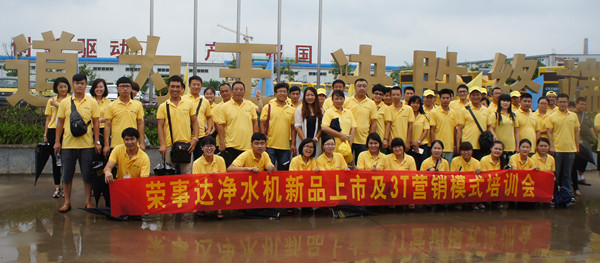 •     7月19-20日,榮事達凈水機高端新品發布會及3T營銷模式培訓會盛大舉行,百余位學員從全國各地奔赴榮事達水工業公司,學習、了解高端新品特性,實地考察公司生產規模及研發實力,并進行了3T創新營銷模式的實戰培訓。