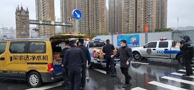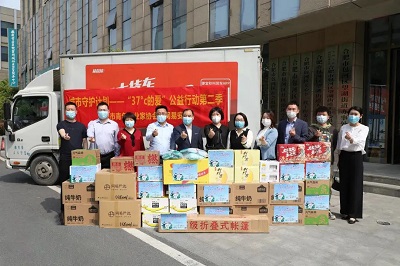 4月8日榮事達水工業(yè)集團工作人員以最快的速度進行物資的裝載,滿載著抗疫物資,發(fā)往37℃的愛活動統(tǒng)籌處。