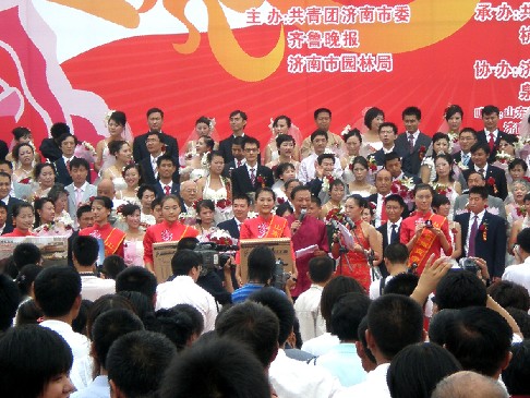 摘要:9月20日,備受關注的“圓百年夢想,結百年情緣——2008中國濟南市齊魯情玫瑰婚典”大型集體婚禮在濟南市泉城廣場開幕,本屆是由濟南市團市委、杭...